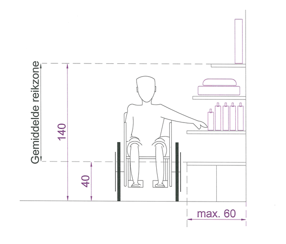 - Een toegankelijke bedieningshoogte en reikdiepte: de knoppen of het touchscreen zijn bedienbaar, het scherm zichtbaar, de kaart kan ingevoerd worden