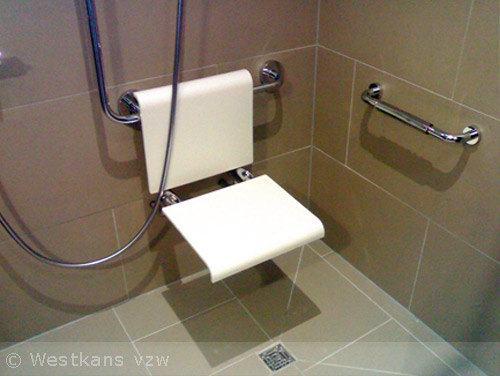 Indien dit zitje in een hoek van de ruimte voorzien wordt, houd dan rekening met de principes die bij de individuele douche omschreven zijn. Zo is het gebruik veiliger en hoeft men niet achter zich te reiken om de kraan te bedienen.