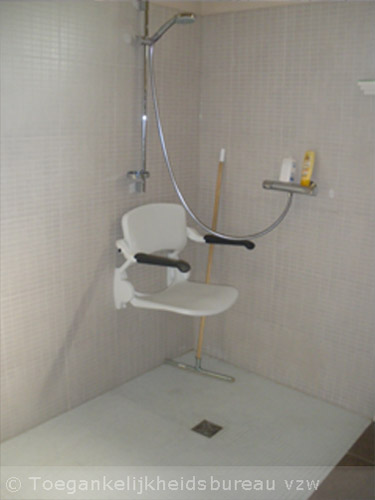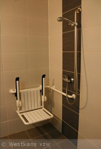 Ook in deze gemeenschappelijke ruimten wordt optimaal een douchezitje voorzien. Hiervoor kan men gebruik maken van een opklapbaar of verplaatsbaar zitje dat geen belemmering vormt voor personen die dit niet nodig hebben.