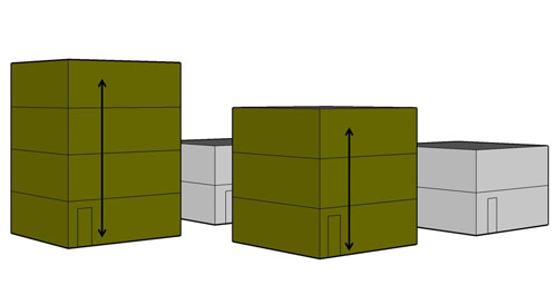 Art. 5 Bij handelingen aan meergezinswoningen, waarbij de constructie na de handelingen toegangsdeuren tot wooneenheden bevat op meer dan twee niveaus en minstens zes wooneenheden bevat, is dit besluit van toepassing op de nieuw te bouwen, te herbouwen, te verbouwen of uit te breiden gemeenschappelijke delen, met inbegrip van de publieke zijde van de toegangsdeuren tot elke wooneenheid. Voor die gebouwen, die uit verschillende aansluitende delen bestaan, zijn de bepalingen van de verordening die gelden voor de verdiepingen en voor de trappen naar andere niveaus alleen van toepassing op de onderdelen die toegangsdeuren tot wooneenheden op meer dan twee niveaus hebben
