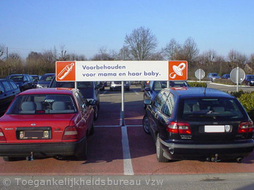 • Een duidelijke signalisatie. Het moet duidelijk zijn dat de parkeerplaatsen comfortplaatsen zijn. Dit kan door toevoeging van aandachtsborden, bijvoorbeeld een bord ‘voorbehouden voor gezinnen met kleine kinderen’.