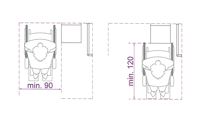 Voldoende ruimte is niet enkel noodzakelijk voor rolstoelgebruikers, het geeft ook een meer comfort aan doorsnee bezoekers, bijvoorbeeld voor ouders met kinderen bij een zwembad.