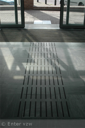 • Informatiemarkeringen: tegels uitgewerkt als verende vlakken. Ze geven informatie (eindpunt, toegang of functie in een ruimte of gebouw)