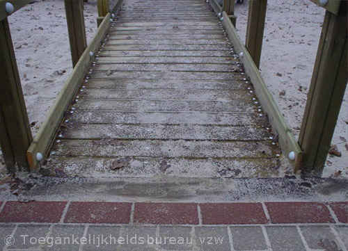 Een brug, trap of helling zullen vaak een punt- of lijnversmalling vormen op de (loop)route. Zorg ervoor dat de functionele eisen van het toegangspad naadloos overgaan in deze elementen.